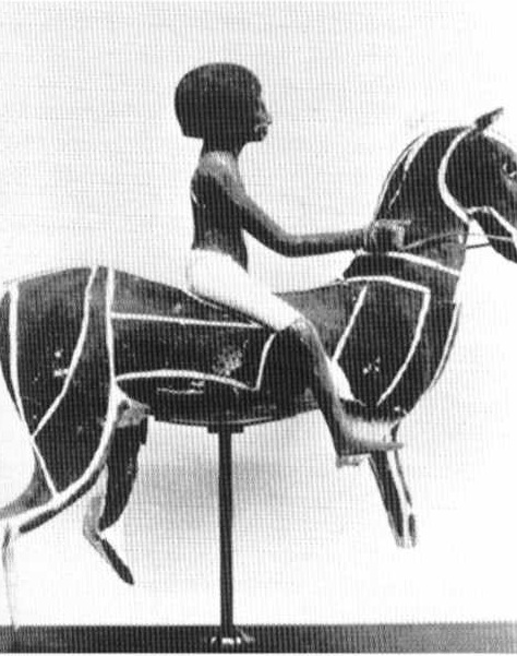 Hình 16: Dù lính kị binh thật sự có lẽ phải xuất hiện trong quân đội Assyria vào thế kỉ 9 BC thì tượng đất trên cho thấy người Ai cập đã sử dụng kị sĩ trong nhiều nhiệm vụ khác nhau. Tượng trên có từ thời kì Armana