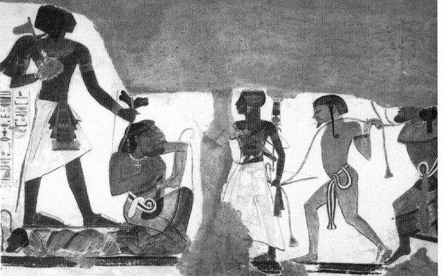 Hình 4 : Nubia là xứ rất quan trọng đối với Tân vương quốc như là nguồn cung cấp vàng và các nguyên liệu thô khác. Đây cũng là nơi cung cấp nguồn nhân lực cần thiết khi tuyển quân. Người Medjay tương tự như những tù nhân Nubia được mô tả ở đây được sử dụng rộng rãi trong quân đội của Kamose trong những đơn vị dùng cho trinh sát hoặc tập kích.