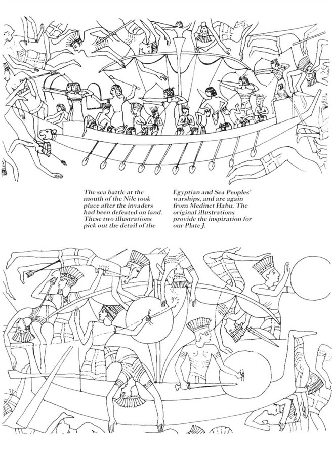 Hình 20, 21: miêu tả trận đánh với quân xâm lược từ biển vào năm 1190 BC
