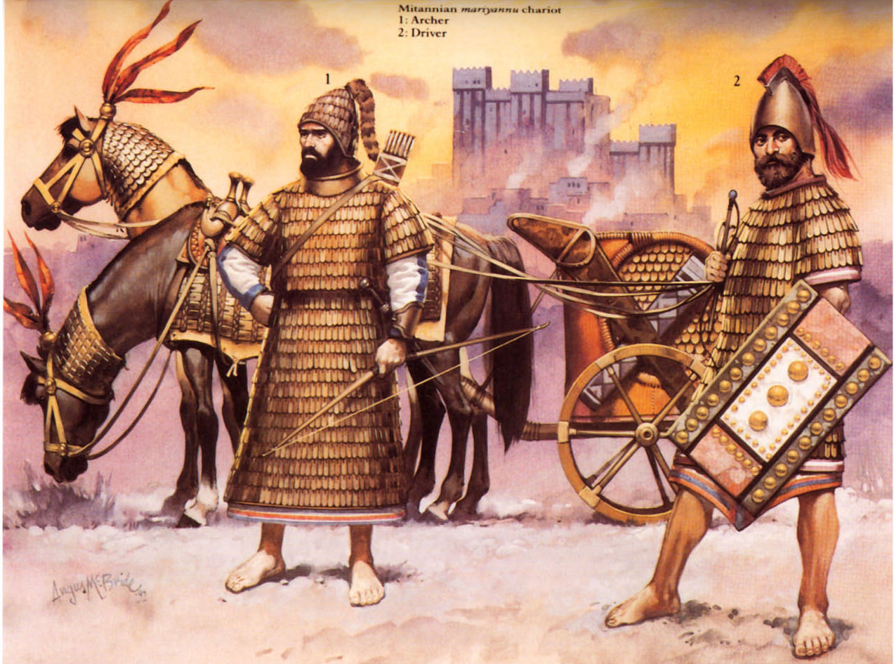Sự đóng góp của người Mitanni vào lịch sử chiến tranh Trung Đông là không thể bỏ qua. Dù họ không phải là người mang đến những chiến xa vào vùng đất này nhưng chính sự triển khai chiến thuật thứ vũ khí mới cùng với việc tăng cường trang bị giáp cho ngựa và kị sĩ đã tác động đến không chỉ quân đội Ai cập mà còn cả người Hittite và Assyria. Dù áo giáp vảy và phiến đã được người Hurrian phát minh từ khoảng thế kỉ 17 BC thì việc trang bị rộng rãi là ở những chiến binh mariyannu của vương quốc Mitanni. Những chiếc áo đầy đủ của một chiến binh hoàng gia mariyannu cao quý thật sự rất giá trị và cầu kì trong chế tạo (hình 9), trở thành một tiêu chuẩn thước đo mà các dân tộc khác trong khu vực đã học tập theo. Ảnh hưởng của người Mitanni rất rõ trong áo giáp của cung thủ chiến xa AI cập (hình 10) . Sự tôn trọng của người Ai cập với trang bị của chiến binh mariyannu dẫn tới việc cướp bóc chiến lợi phẩm thường xuyên trong những chiến dịch của họ ở Palestine và Syria. Điều này thấy rõ hơn khi các chiến xa và thiết bị kèm theo chiếm một phần lớn trong số quà cưới được gửi bởi vua Artanama đến pharaoh Tuthmosis IV khi một hôn ước được thực hiện đánh hiệp ước đình chiến giữa hai vương quốc vào đầu thế kỉ 14 BC. Chắc chắn không có gì ngạc nhiên khi người AI cập quan sát cẩn trọng quyền lực mới đang lớn mạnh với một dự báo xung đột không thể tránh khỏi.