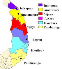 1. Vijaya, đã xuất hiện trong một bia ký của Jaya Harivarmadeva tìm thấy tại Po Nagar Nha Trang khoảng năm 1160 và thường được đề cập đến trong thư tịch cổ Việt Nam với danh hiệu là Trà Bàn/Chà Bàn hay Đồ Bàn hoặc Phật Thệ (Hoàng Xuân Hãn 1966: 62-66; Đào Duy Anh 1964: 174-76) là địa vực nằm trong tỉnh Bình Định ngày nay. Đương thời, tiểu quốc này được thư tịch Trung Hoa gọi là Tân Châu để phân biệt với Cựu Châu hay Amaravati ở vùng Quảng Nam ngày nay(1). Tiểu quốc Vijaya đã phát triển liên tục từ thế kỷ 11 đến thế kỷ 15, được minh chứng bởi các di tích kiến trúc to lớn hiện vẫn tồn tại như Tháp Bạc (Tk 11), Bình Lâm (Tk 11), Dương Long (Tk 12-13), Hưng Thạnh (Tk 12-13), Cánh Tiên (Tk 13-14), Thốc Lốc (Tk 14-15), Thủ Thiện (Tk 14-15), tọa lạc dọc theo sông Côn; còn đầm Thị Nại [Sri Boney] chính là cảng-thị của tiểu vương quốc này.