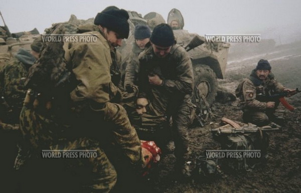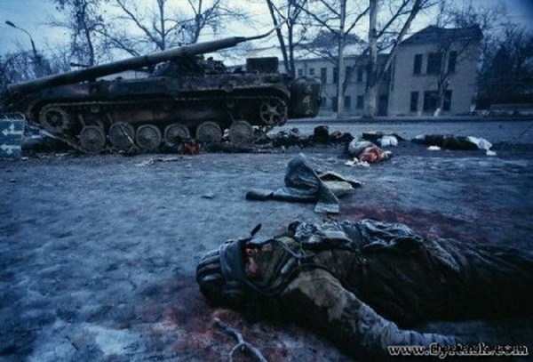 Lính Nga đang kéo xác một đồng đội bị giết bởi du kích Chechen