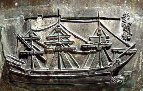 Loại thuyền đi biển quan trọng nhất của nhà Nguyễn trong thế kỷ 19 được khắc trên cửu đỉnh ở Huế – Ảnh: THÁI LỘC