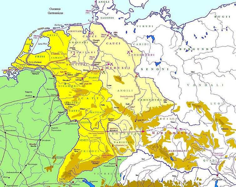 Các cuộc xâm lược của Nero Claudius Drusus, hay Drusus I khoảng từ năm 12 – 8 trước Công Nguyên.