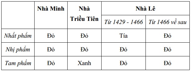 Tuy nhiên, năm 1429, triều đình nhà Lê quy định, các quan Nhị – Tam phẩm đều được mặc màu Đại hồng10