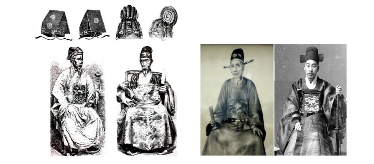 Buổi đầu lập quốc, phẩm phục Thường triều của bá quan Triều Tiên, nhà Lê Đại Việt và nhà Minh, đều dùng phục sắc để phân biệt phẩm cấp. Tuy nhiên, quy định về phục sắc giữa ba nước Trung, Hàn, Việt không hoàn toàn đồng nhất. Cuối năm 1392, phẩm phục của bá quan Triều Tiên được quy định: “Quan Nhất phẩm, áo bào đỏ, đai sừng tê. Quan Nhị phẩm cho tới các chức Cáp môn trở lên, áo bào đỏ, đai vàng lệ chi. Quan Tam – Tứ phẩm, áo bào xanh, đai da gắn sừng đen, hốt ngà. Quan Ngũ – Lục phẩm, áo bào xanh, đai da gắn sừng đen, hốt gỗ. Các quan Thất phẩm trở xuống, áo bào màu lục, đai hốt như các quan Ngũ – Lục phẩm. Hia đều dùng màu đen.”8