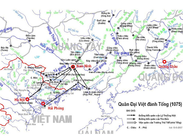 Đây là giai đoạn quan trọng trong sử Việt, một chiến tích oai hùng của tộc Việt: tấn công vào lãnh thổ của Hán tộc. Những diễn biến này đã được các sử gia, các học giả viết khá nhiều. Độc giả có thể đọc thêm chi tiết trong những bộ sử đang được lưu hành, cùng các bài viết liên quan đến sự việc. Vì thế người viết chỉ xin tóm tắt, cộng thêm việc vẽ lại bản đồ để ghi lại các địa danh, với phiên âm Hán- Việt để độc giả tiện việc truy cứu, hay tìm hiểu thêm về chiến trường giữa hai triều Lý và Tống.