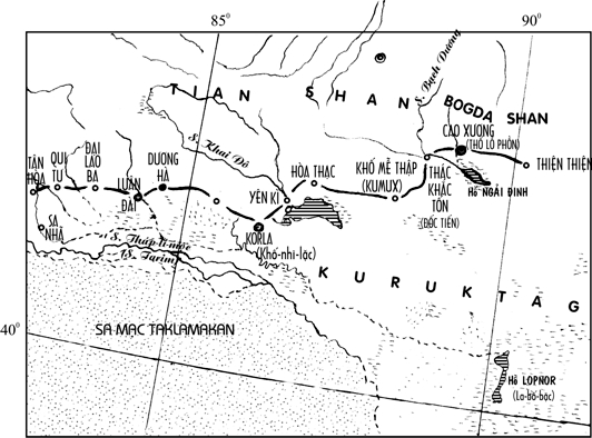 Vua Tây Vực chạy đến Tát Mã Nhĩ Can, đại quân mới vượt sông Tích Nhĩ. Tướng bày mưu kế, khuyên bảo họ nhanh chóng đánh quân của các xứ ở Hoá Lặc Tự Di, cùng lòng chống giặc, ra sức chống giữ sông A Mẫu, thì vùng sông Tích Nhĩ hiểm yếu dù mất, bên trong hiểm yếu vẫn có thể giữ. Có người khuyên đến Ca Tự Ni, nếu quân địch vào sâu thì đến Ấn Độ, đất này nắng nóng nhiều núi hiểm trở, người Mông Cổ không dám đi lên; Vương cho là kế này vẹn toàn, theo đó. Sai người đến Ô Nhĩ Kiện Xích, báo cho mẹ, vợ của mình, đến Mã Tam Đức Lan tránh binh. Vương vuợt sông A Mẫu, đi đến Ba Nhĩ Hắc, con của mình là Ốc Khẳng Ai Đinh từ Nghĩa Lạp Khắc sai sứ giả đến, đón cha từ phía tây đến, Vương lại đổi kế theo con. Trát Lạp Lặc Đinh lúc ấy theo cha, muốn giả làm chức thống lĩnh quân sĩ, giữ sông A Mẫu. Vương nói là còn nhỏ không trải qua sự việc, không hứa. Chốc lát nghe tin Bố Cáp Nhĩ bị hãm, tiếp theo lại nghe tin Tát Mã Nhĩ Can cũng bị hãm, Vương gấp đến Nghĩa Lạp Khắc. Quân đi theo đều là người Khang Lí, ngầm mưu tính bỏ đi. Vương có ý đề phòng, mỗi lần nghỉ thì đổi chỗ. Một đêm, dừng dời chỗ khác, mà lại để trướng trống không bị tên bắn đầy ghế. Đến Nhĩ Sa Bất Nhi, nghe tin đại quân đã vượt sông A Mẫu, giả nói là ra đi săn, bỏ đến Nghĩa Lạp Khắc.