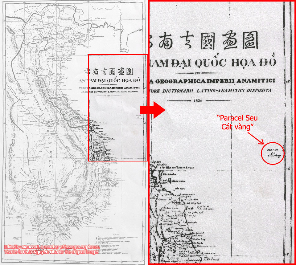 Đặc biệt với quần đảo giữa biển Đông có địa danh hành chính là Hoàng Sa (chữ Hán), Taberd đã ghi tục danh là Cát Vàng (Nôm) mà người Tây phương gọi là Peracel. Địa danh Cát Vàng là tiếng Việt chỉ có ở Đại Việt xưa và Việt Nam nay, không thể ở đâu khác.