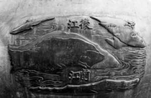 Hình Tiền Giang (nhánh dưới ) và Hậu Giang(nhánh trên) được khắc chạm trên Huyền đỉnh trong Đại Nội, Huế (ảnh: Kevin Võ)