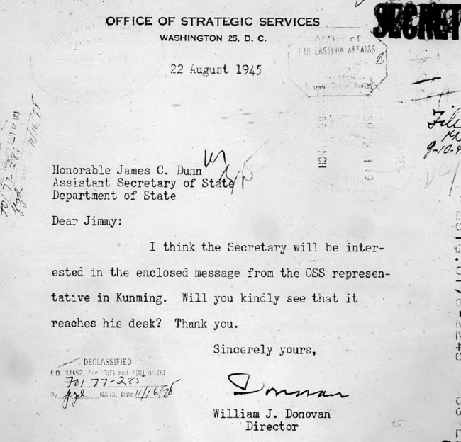 Chắc chắn có những người đã tuyên bố muốn dành cho Hoa Kì một cơ hội. Chẳng hạn, ngày 22 tháng 8 năm 1945, người đứng đầu OSS William Donovan gửi chuyển tiếp tới Bộ ngoại giao thông tin mà một nhân viên OSS ở Côn Minh đã đệ trình. Nhân viên này trích lời “lãnh đạo của Quốc Dân Đảng An Nam tại Trung Quốc và một đại diện trực tiếp của Uỷ ban Giải phóng trung ương tại Hà Nội” đã nói như sau: