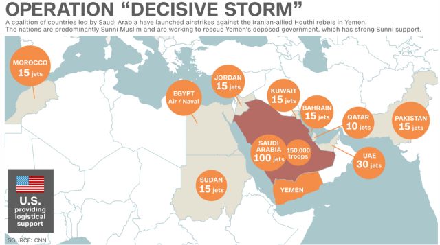Washington tuyên bố không tham gia trực tiếp hay gián tiếp vào cuộc chiến Yemen, nhưng sẽ trợ giúp đồng minh Riyadh về tình báo ở mức độ tối thiểu.