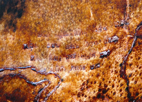 Một điều có sức hấp dẫn lớn đối với các nhà nghiên cứu Phật sử là, trên bản đồ được khắc dày đặc minh văn bằng hai loại cổ tự kết hợp đan xen: Pali và Sanskrit, loại hình chữ viết Brahmi gốc Ấn Độ. Trong đó, nổi bật hai câu kim ngôn quý giá của Đức Phật Thích Ca trong cuộc thuyết pháp đầu tiên cho 5 môn đệ tại vườn Lộc Uyển, sau khi Ngài đắc đạo lúc tròn 35 tuổi. Nếu tính niên đại theo “Miến Điện Phật truyền” được nhiều nước chấp nhận, đến nay thời gian đã trôi qua 2.587 năm. Tôi xin được chép hai câu Phật ngôn trong tấm bản đồ này để cống hiến quý độc giả