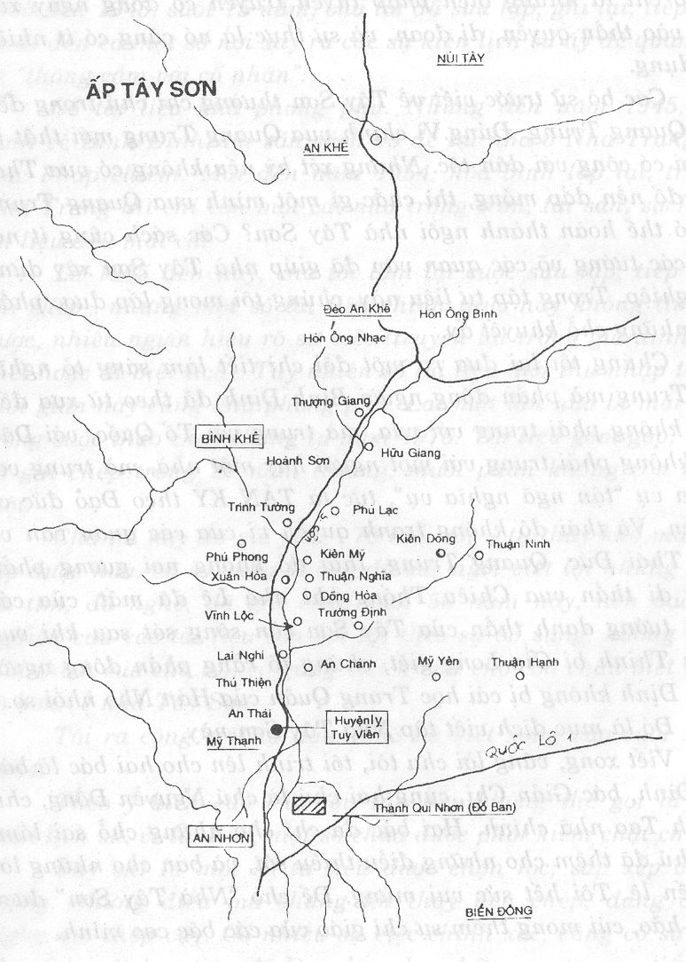 Vì những am tường của nhà văn lão thành Quách Tấn về địa thế đất Tây Sơn – Bình Ðịnh, nơi sinh trưởng ra nhà văn, mà trong tất cả các sử liệu từ trước đến nay đều chỉ nói rất lờ mờ về địa thế nơi đây, nên người viết xin mạn phép trích phần bản đồ và phần miêu tả trong sách của nhà văn lão thành để phổ biến cho mọi bạn đọc biết rộng rãi thêm hơn về địa thế một thời đã phát xuất những đấng hùng anh vá trời lấp bể, ngõ hầu thiết lập được cảm thông và tự hào hơn với công nghiệp của tiền nhân. Xin đa tạ…
