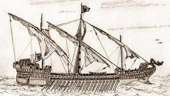 Sự xuất hiện và tiến hóa của các tàu chiến thời đầu Trung cổ là một vấn đề để tranh luận và phỏng đoán: cho đến gần đây, không có xác của một tàu chiến có mái chèo từ thời đầu Trung cổ được tìm thấy, và thông tin được thu thập bằng các chứng cứ phân tích văn học, nghệ thuật và miêu tả qua phần thô của một số tàu buôn. Phải đến năm 2005-2006 các cuộc đào bới thuộc dự án khảo cổ học Marmaray các vị trí của Cảng Theodosius ( nay là Yenikapi) phát hiện ra những trên 20 tàu Byzantine từ thế kỷ 6 đến thế kỷ thứ 10, bao gồm cả tầu Galley.