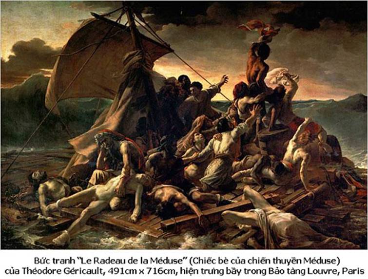 Năm 1819, khi hoạ sĩ người Pháp Théodore Géricault lần đầu tiên trưng bầy tại Paris tác phẩm “Chiếc bè của chiến thuyền Méduse”, ông không thể tưởng tượng nổi phản ứng mà bức tranh sẽ nhận được. Người xem vừa khâm phục nghệ thuật bậc thầy vừa sợ hãi trước cảnh tượng khủng khiếp bầy ra trước mắt họ. Bức tranh rất lớn, kích thước khoảng 5m x 7m, mô tả một nhóm người tuyệt vọng cùng cực trên một chiếc bè đang trôi nổi lênh đênh giữa biển khơi, bỗng thấy một con tầu xuất hiện nhỏ xíu ở tít đằng xa phía chân trời, hy vọng đẩy họ lao về phía trước để vẫy gọi cầu cứu, …