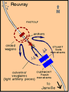 Trong khi đó, vào ngày 08 tháng 6, Sir John Fastolf cuối cùng đã rời Paris với một quân đội tăng cường gồm hàng ngàn binh sỹ Anh, ông này cũnghướng về phía thung lũng sông Loire.