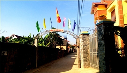Hình 4: Cổng phủ thuộc thôn Ngọc Hà (Xuân Giang, Sóc Sơn, HN) bên trong có dấu tích bức tường cổ bằng đất của Thành Phủ