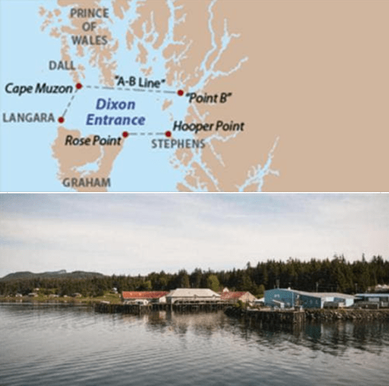Nằm giữa nhóm đảo Haida Gwaii trên bờ biển phía bắc British Columbia và phần mũi cực nam của vùng Panhandle của Alaska (tức là vùng đông nam Alaskia) là eo biển Dixon Entrance giàu tài nguyên, nơi thu hút cá kình, hải âu lớn và năm loài cá hồi, nơi sóng vỗ vào những đoạn bờ biển đầy vách đá và những khu rừng xanh ngắt của Đảo Prince of Wales và phần đại lục. Khi lướt tàu trên sóng biển, có lúc ta đã rời khỏi vùng biển Canada và đi vào vùng biển Hoa Kỳ lúc nào không biết. Thực sự, cách duy nhất để ta biết được là mình đang di chuyển từ nước này sang nước kia là phải dựa vào việc các thiết bị điện tử tự động chỉnh giờ chậm lại một tiếng để khớp với Giờ Chuẩn Vùng Alaska ngay sau khi ta chạy vượt tàu Ngư nghiệp Canada đang tuần tra ngăn ngừa các vụ vi phạm đường biên.