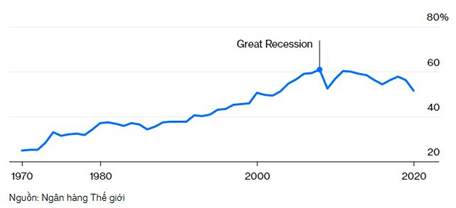 Tỷ trọng thương mại trong GDP toàn cầu đạt đỉnh vào năm 2008