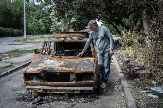 Vitaly Kolesnichenko, một người già hưu trí đang chờ được đưa đi trong tuần này, ngồi trên băng ghế với chiếc túi thể thao chứa đầy quần áo của mình. Đêm 31/5, vợ ông ngủ một mình trên giường gần cửa sổ để nghỉ ngơi cho đỡ nóng. Bà ấy bị tử thương vài giờ sau đó vì làn sóng của vụ nổ từ một cuộc tấn công tên lửa lớn trên đường phố. Các tình nguyện viên đã không kịp đưa bà và hai người khác đến bệnh viện ở Kramatorsk, và họ đã chết ngày hôm đó.