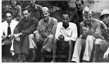 Các sĩ quan OSS ngồi với các nhà lãnh đạo Việt Minh Hồ và Giáp