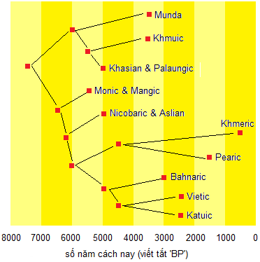 - proto-Vietic: năm 500 BCE (hình trên), hoặc 300 BCE.[18]