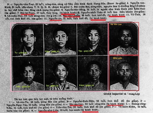 Ảnh Phụ Nữ Tân Văn số 58 (tr. 8), 2 người bị án tử là: Hà Văn Lao và Nguyễn Như Liên (Ngọc-tỉnh).