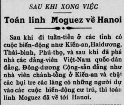Thực thế, đêm 15 rạng sáng 16/2, cuộc nổi dậy ở các tỉnh miền xuôi mới bắt đầu, mà, ngày 17 đã “kiện toàn việc càn quét” thì quả thật, không biết lịch sử là gì! Nói thêm rằng, tận tới ngày 23/3, việc “càn quét” mới tạm kết thúc. (Hà thành Ngọ báo 789, 26.3.1930, xem hình)