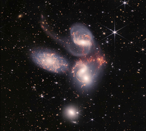 Kính viễn vọng Không gian James Webb của NASA tiết lộ những chi tiết chưa từng thấy về nhóm thiên hà “Bộ tứ Stephan”. Ảnh: NASA