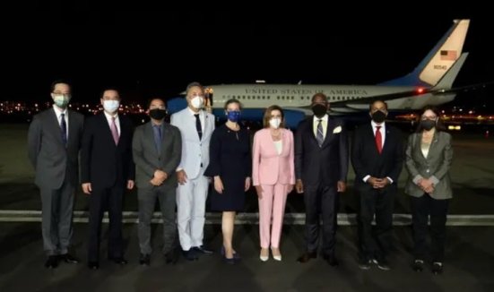 Pelosi đang đi cùng Chủ tịch Bộ Ngoại giao Hạ viện Gregory Meeks của New York, Chủ tịch Các vấn đề Cựu chiến binh Mark Takano của California và các Hạ nghị sĩ Suzan DelBene của bang Washington, Raja Krishnamoorthi của Illinois và Andy Kim của New Jersey.