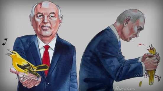 Ý tưởng của nhà lãnh đạo Liên Xô cũ về phẩm giá con người đã được mở rộng sang quyền tự do ngôn luận. Thật là “đáng kinh ngạc và nhục nhã”, dưới chế độ Xô Viết, những người có học thức phải sống trong một thế giới của những lời dối trá, khẩu hiệu và sự kiểm duyệt từ cơ quan quản lý. Gorbachev đã thay đổi điều đó bằng cách giải phóng báo chí và các ngành công nghiệp sáng tạo, thả những người bất đồng chính kiến ​​và cho phép các nghiên cứu lịch sử đúng đắn được phép tiếp tục. Putin đang đưa Nga lùi về quá khứ với việc đàn áp theo kiểu Liên Xô – khi ông tiêu diệt các phương tiện truyền thông độc lập cuối cùng, bỏ tù người của phe đối lập và coi việc thừa nhận rằng Nga đang có chiến tranh là một hành vi phạm tội hình sự.