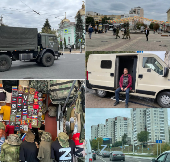 Những chiếc xe tải quân sự và những chiếc xe bọc thép chở lính được phun sơn chữ Z chạy ầm ầm qua các ngã tư, và các nhóm đàn ông mặc đồ rằn ri đi trên đường phố và mua sắm các mặt hàng quân sự như đồ lót giữ nhiệt. Người tị nạn đổ về từ các vùng lãnh thổ ở Ukraine mà gần đây đã bị Ukraine chiếm lại.