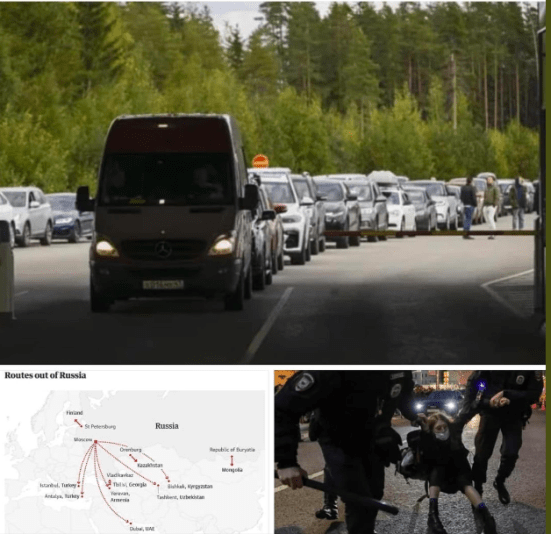 Lực lượng biên phòng ở Phần Lan, quốc gia EU cuối cùng vẫn cho phép người Nga nhập cảnh bằng thị thực du lịch, cho biết họ đã nhận thấy một “số lượng đặc biệt lớn” công dân Nga tìm cách vượt biên suốt đêm, trong khi các nhân chứng cũng nói rằng các biên giới Nga-Gruzia và Nga – Mông Cổ đã “tắc nghẽn” với lượng xe cộ đông đúc.