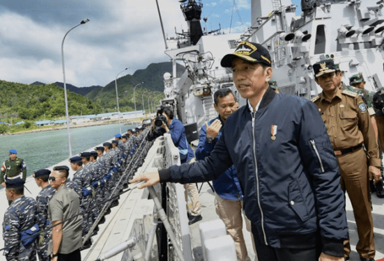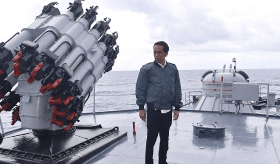 Tổng thống Indonesia Joko Widodo trên tàu hải quân. Ảnh: Twitter/Presidential Handout