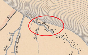 Hình 3: Sông Nhật Bản (Japansche R.) phóng to từ bản đồ vẽ năm 1658-1659 được lưu trữ tại Cục Lưu trữ Quốc gia tại La Haye (Hà Lan). (Buch W.J.M. 1936, tr. 100b.)