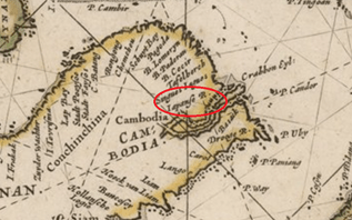 Hình 5: Bản đồ của Coronelli năm 1687 phóng to đoạn hạ lưu sông Mêkong.