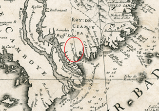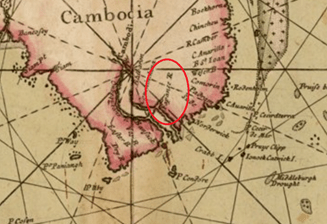 Hình 6: Bản đồ của T. Page & R. Mount năm 1702 phóng to đoạn hạ lưu sông Mêkong.