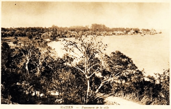 Toàn cảnh Hà Tiên vào đầu thế kỷ 20 nhìn từ phía Pháo Đài in trên một bưu ảnh xưa do nhà Nadal xuất bản.