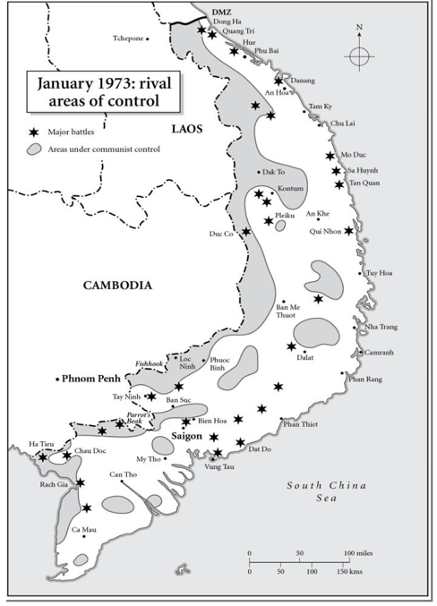 Và không chỉ có Miền Bắc mới bắt đầu tỏ ra khinh thường các điều khoản Paris. Vì những lý do có thể hiểu được, Tổng thống Nguyễn Văn Thiệu cảm thấy không thể chịu được tình trạng mà phần lớn vùng lãnh thổ của xứ sở ông vẫn sẽ nằm trong tay phe cộng. Một số sử gia viết như thể Hiệp định Paris có thể là một đường lối giải quyết bền vững, nếu các điều khoản của nó đã được tuân thủ. Nhưng ít người biết lý lẽ có thể cho rằng một quốc gia giờ đây thể hiện trên bản đồ bởi một miếng chắp vá các cộng đồng – rải rác các ốc đảo của người cộng sản được hình thành bằng việc ngừng bắn tại chỗ và chẳng bao lâu được vạch ra trên mặt đất bởi hàng vạn lá cờ của đối thủ – có thể khả thi về phương diện kinh tế và chính trị. Hơn nữa, Thiệu, giờ đã 50 tuổi, bỗng thấy mình rơi vào tình trạng nan giải bối rối. Ông đã tạo dựng một sự nghiệp dựa trên sự phục tùng các ý muốn của người Mỹ, nhưng từ rày trở đi khao khát tha thiết nhất của nhiều đồng bào của Nixon là ông ta nên chui trốn vào một xó xỉnh nào đó. Clark Clifford, bộ trưởng quốc phòng trước đây của Lyndon Johnson, phát biểu công khai tổng thống Việt Nam là một trở ngại cho hoà bình, nói rằng nếu ông từ chức, một ‘chính quyền thực sự trung lập và có tính đại diện có thể được thành lập tại Sài Gòn sẽ đàm phán trong sự tin cậy với phía bên kia’. Ý kiến này là thiếu lý lẽ: cho dù Thiệu có từ chức, phe cộng không hề quan tâm đến một kết quả nào khác hơn là độc quyền làm chủ một Việt Nam thống nhất. Nhận xét của Clifford phản ánh khao khát có thể hiểu được nhưng xấu xa của nhiều người Mỹ không vì muốn thay đổi chính quyền, mà vì muốn Việt Nam đáng nguyền rủa và chắc chắn bị đày đọa biến mất khỏi tâm thức họ. Thiệu không thể khoe khoang là mình đạt được thành tựu nào có ý nghĩa trong hai năm cuối cùng tồn tại của một quốc gia bị chia phần, nhưng khó tin có một đồng bào nào của ông có thể làm tốt hơn. Ông tiếp tục cuộc chiến một phần bởi vì Lê Duẩn ép ông phải làm thế, nhưng có lẽ cũng bởi vì – như Kissinger có lần nhận xét ác ý – cuộc chiến đã trở thành lý do tồn tại của chế độ hỗn loạn của ông.
