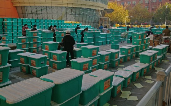 Ảnh: Các thùng đồ ăn được bán tại cửa hàng bách hóa ở Thạch Gia Trang