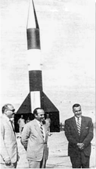 Tổng thống Ai Cập Nasser trong một buổi thử tên lửa với các nhà khoa học Đức và Ai Cập