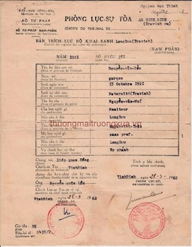 1. Ngay cả vào thời đại của người viết/NCT (td. thập niên 1950, 1960) ở miền Nam VN vẫn còn ghi trong giấy khai sinh cấp bậc của người vợ (vợ chính hay vợ thứ) như một tờ trích lục bộ khai sinh bên dưới – giấy khai sinh hiện tại thì không còn ghi như vậy. Hình sau trích từ trang https://thuongmaitruongxua.vn/bai-viet/giay-to-van-bang-hoc-sinh-xua/ban-trich-luc-khai-sinh-1962.html