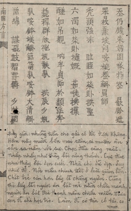 16) Josepho Maria Morrone (khoảng đầu TK 19) “Lexicon Cochin-sinense Latinum” đăng trong cuốn “A Dissertation on the nature and character of the Chinese system of writing” viết bởi nhà ngôn ngữ Mỹ Peter Stephen Du Ponceau (1838), in lại bởi NXB Kessinger Publishing. Kèm thêm bảng từ vựng căn bản có 333 chữ Nôm và chữ quốc ngữ với giải thích.