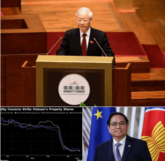Nhưng khi các cơ quan quản lý thị trường bắt đầu hủy bỏ các đợt chào bán trái phiếu một tháng sau đó, các nhà đầu tư đã tạm ngưng dòng vốn để đánh giá lại thiệt hại. Những lo lắng này trở nên càng sâu sắc hơn vào tháng Giêng, khi chiến dịch chống tham nhũng đã đánh gục ba người chức cao nhất — Chủ tịch nước Nguyễn Xuân Phúc và hai cấp phó của Thủ tướng Phạm Minh Chính. Đòn đánh tổng lực này đã báo động cho các quan chức cấp thấp hơn, với nỗi sợ rằng họ có thể bị liên lụy trong cuộc điều tra tham nhũng tiếp theo. Có hơn 500 đảng viên Đảng Cộng sản đã bị truy tố tội tham nhũng chỉ riêng trong năm 2022.
