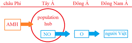 Hình 10 tóm lại diễn biến từ sau khi AMH ra ngoài châu Phi cho tới khi tạo ra cái lõi của người Việt thời nay là yhg O, theo version mới nhứt của giả thiết OOA (Vallini et al4).