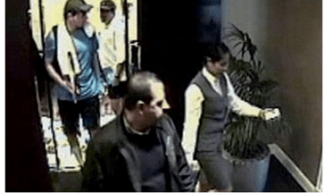 Al-Mabhouh bước ra thang máy , theo sau là hai “người chơi quần vợt”.