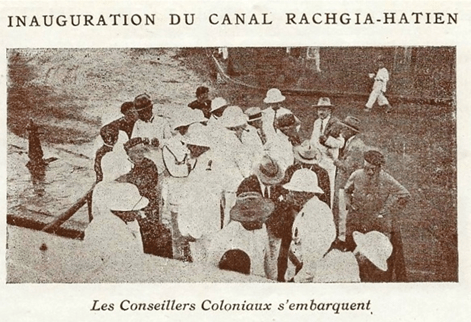 Các cố vấn thuộc địa xuống tàu để đi dự lễ khánh thành kênh đào Rạch Giá-Hà Tiên