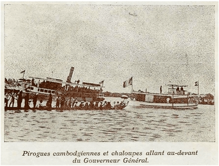 Xuồng đua Khmer và tàu khách chạy đến với quan Toàn Quyền Pháp