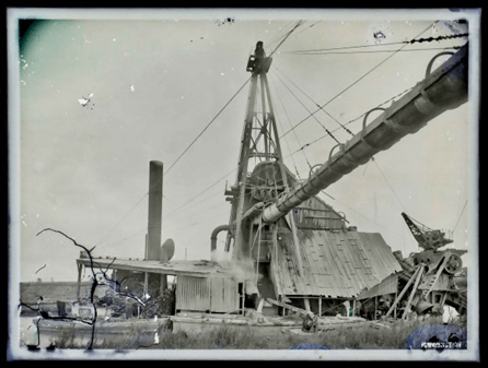 Rạch Giá 1920-1929 – Tàu vét bùn. Hoạt động trục vớt tàu vét bùn « Nantes » … bị bão đánh chìm khi đang hoạt động trên công trường. Nguồn hình: Trang face Book « Thú Chơi sách ».